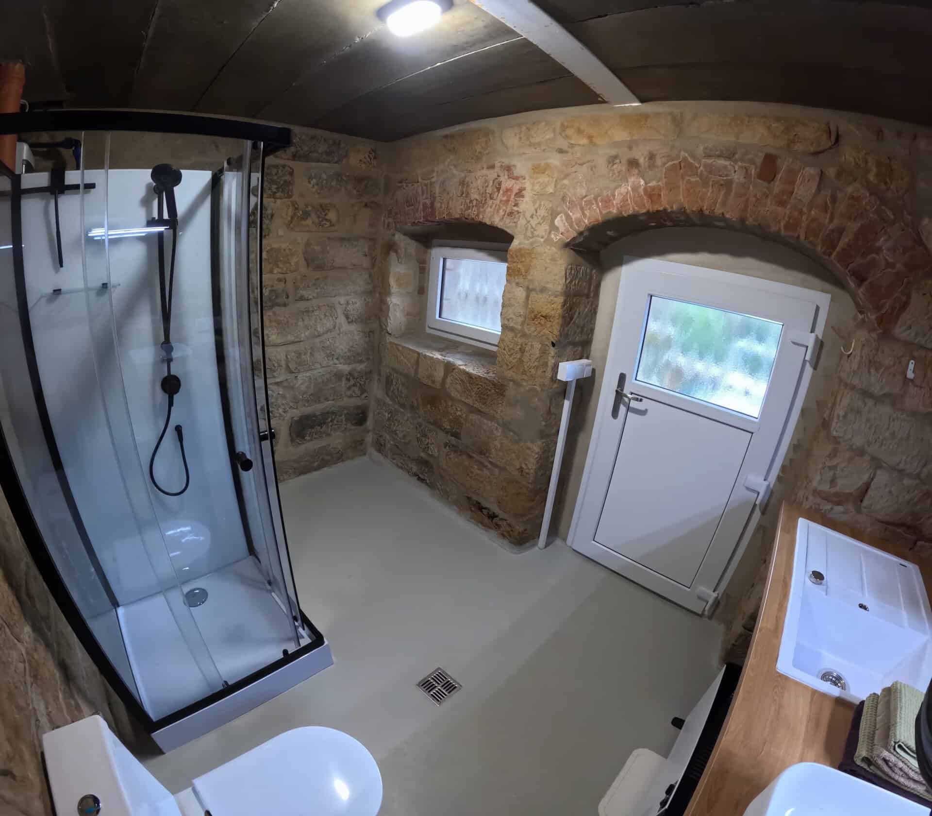 Dusche, WC, Waschtisch & SpültischExklusive NutzungHistorisches Sandsteinambiente