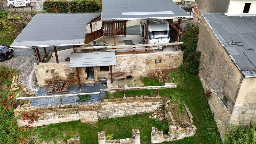 Ein 400 m² großes Grundstück in Bad Schandau zur alleinigen Nutzung, XXL Carport mit Schutz vor Wettereinfluss, Sonne bis zum Sonnenuntergang, historisches Sandsteinambiente und ein eigenes Bad im Gewölbekeller. Ruhig gelegen im Dorf Ostrau, mit direktem Zugang zu den Schrammsteinen.