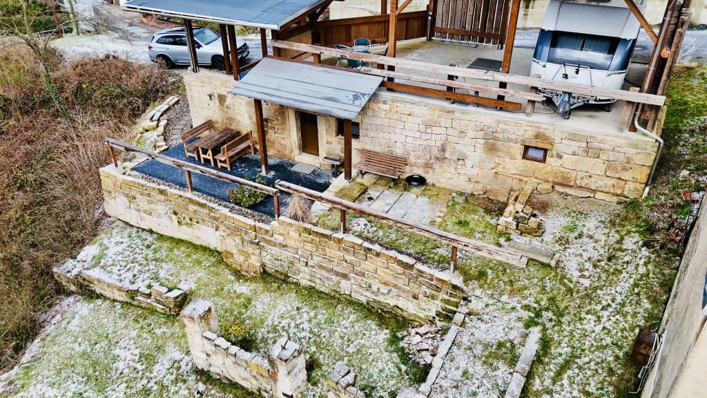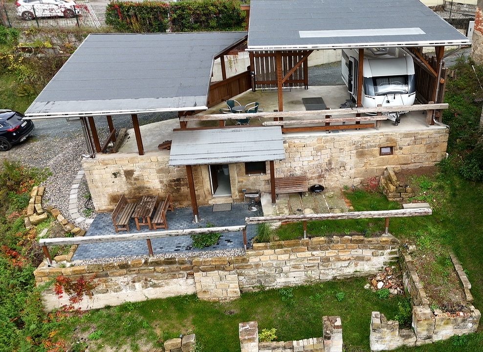 Sie campen auf dem befahrbaren Kellergeschoss eines Hauses aus dem 18. Jahrhundert. Was heute ein ruhiger Rückzugsort ist, war einst ein verfallenes Gebäude, das wir 2022 übernommen haben. Das Haus selbst wurde zurückgebaut – der historische Sandsteinkeller jedoch bewusst erhalten und teilweise wiederhergestellt. Heute dient dieses Gewölbe als kühler Rückzugsort und als Badezimmer für unsere Gäste. Der Sandstein erzählt dabei seine eigene Geschichte – von Beständigkeit, Zeit und handwerklicher Substanz. Genau diese Werte prägen auch den Stellplatz Domizil Sonnenterrasse. Wir sind als Vermieter nicht vor Ort. Statt Kontrolle setzen wir auf Vertrauen. Unser Leitgedanke lautet: Mi casa es su casa. Sie sind Ihr eigener Herr, gestalten Ihren Aufenthalt frei und eigenständig – so, wie wir es selbst tun würden. Damit dieser besondere Ort auch für zukünftige Gäste erhalten bleibt, bitten wir um einen respektvollen, achtsamen Umgang. Nur so ist es möglich, einen solch privaten Stellplatz mit Freude, Leidenschaft und Nachhaltigkeit anzubieten.